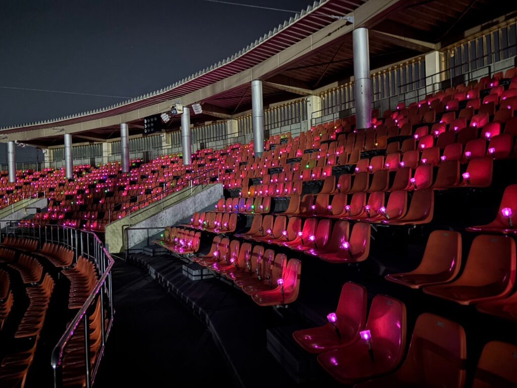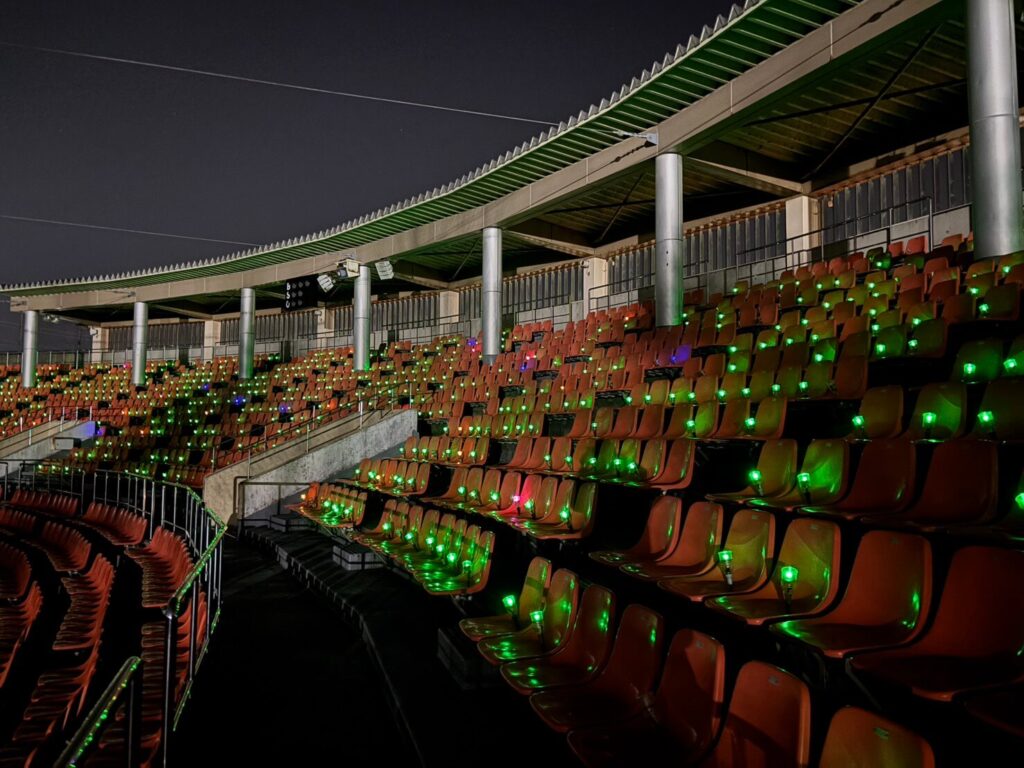 観覧席7000席に千枚田のイルミネーション(ペットポタルランタン)を設置