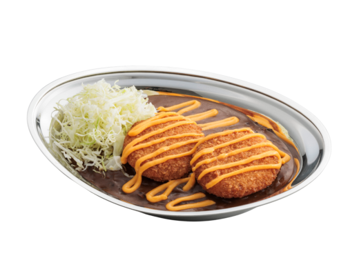 ほんのり甘いホクホクのコロッケに、とろりとしたチェダーチーズソースをかけた、チーズの魅力を堪能できる一皿。濃厚なチーズのコクが、チャンピオンカレーならではのスパイシーな味わいをやさしく包み込み、食欲の秋にぴったりの組み合わせです。
