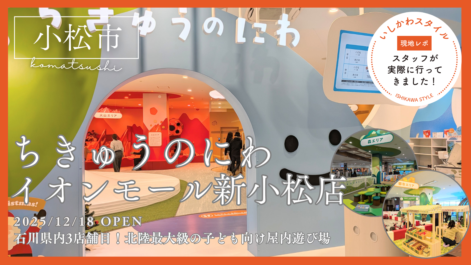 2025年12月18日(木)、イオンモール新小松に、石川県内3店舗目となる、屋内型こどもの遊び場「ちきゅうのにわ 新小松店」がオープン!