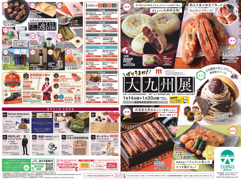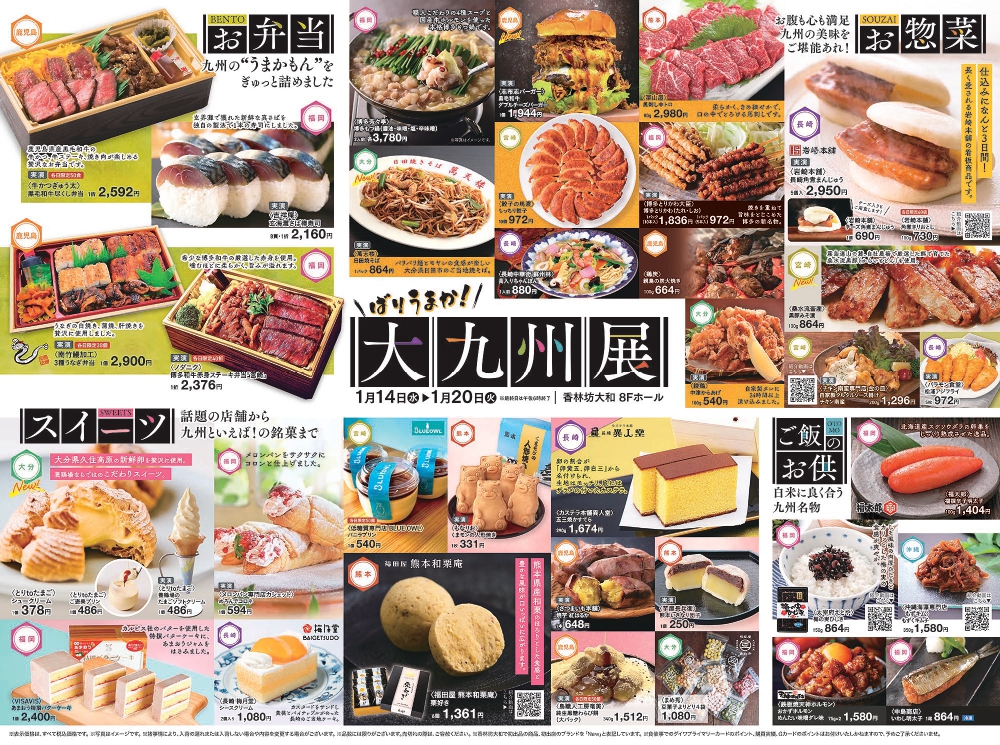 1月14日(水)~1月20日(火)の期間中、香林坊大和にて「大九州展」が開催されます。