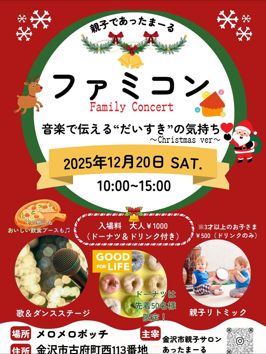 12月20日(土)、金沢市のメロメロポッチで「親子であったまーる ファミコン ファミリーコンサート〜family concert〜」が開催されます。