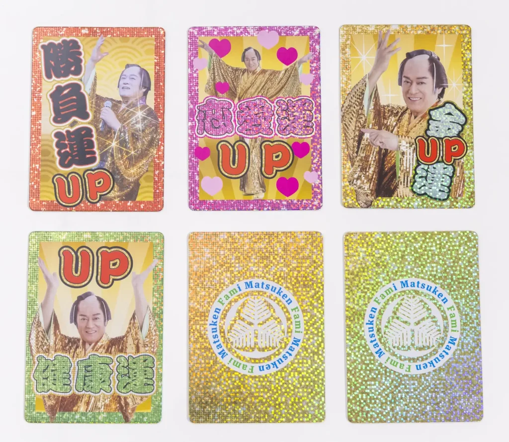 | 【内容】 | マツケンのオリジナル開運カードで、華やかなデザインとともに、あなたの運気を引き寄せるパワフルなアイテムです。 全6種、どれが当たるかは運次第。 ※直筆サイン入りカードや、ファミマポイント1万円分のコード付きカードが入っている場合があります。 |