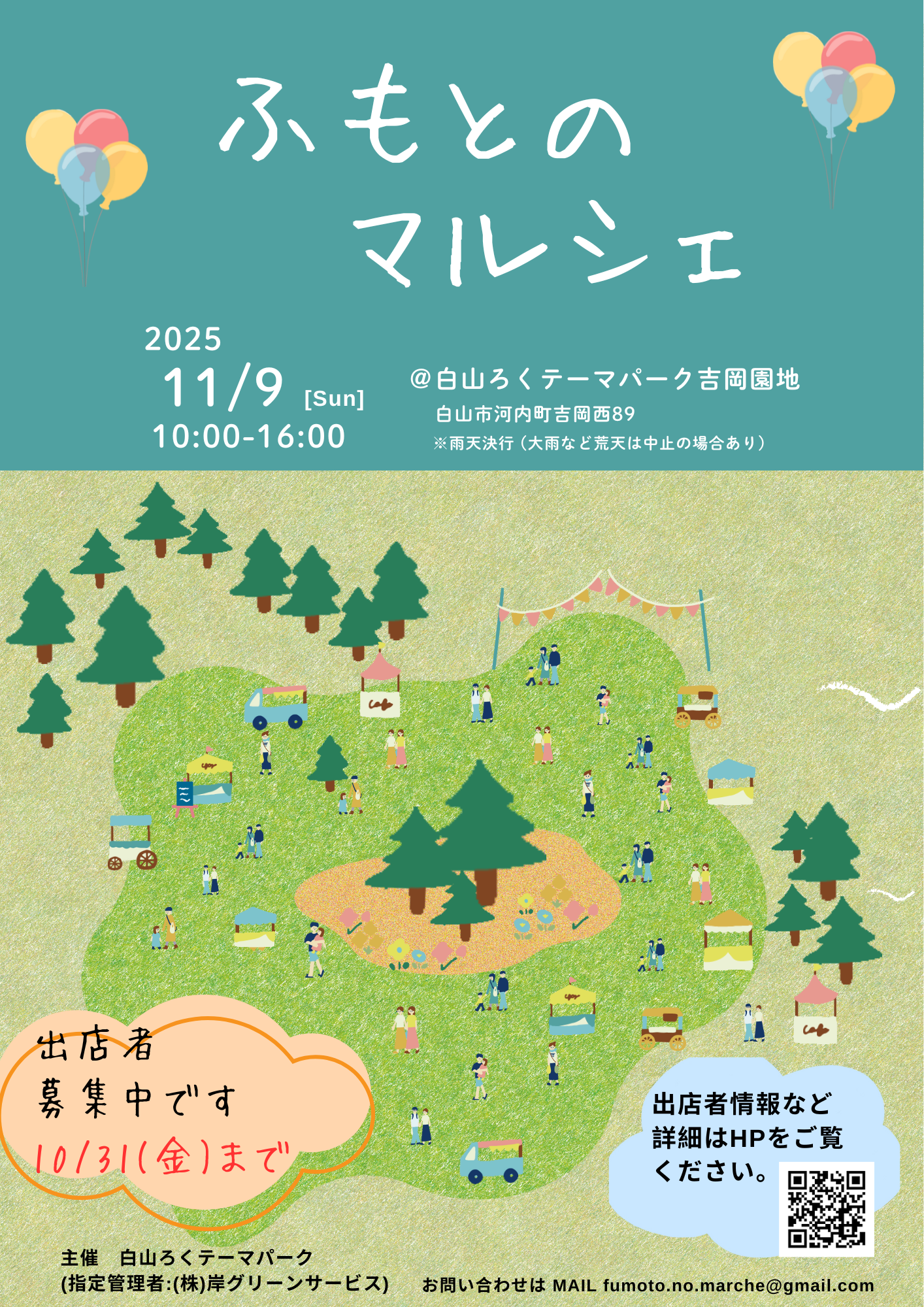 11月9日(日)に、白山市の白山ろくテーマパーク吉岡園地にて「ふもとのマルシェ」が開催されます。