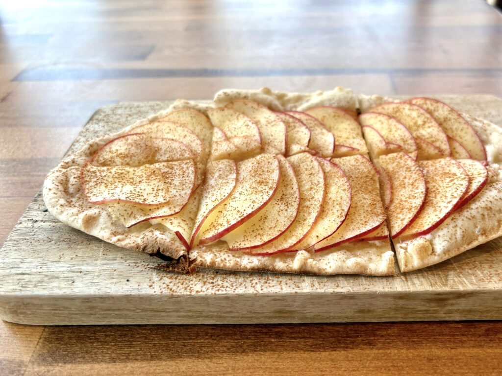 一方で、りんごとシナモンのフラムクーヘンはやさしい甘さが広がり、デザート感覚で楽しめる一品です♡