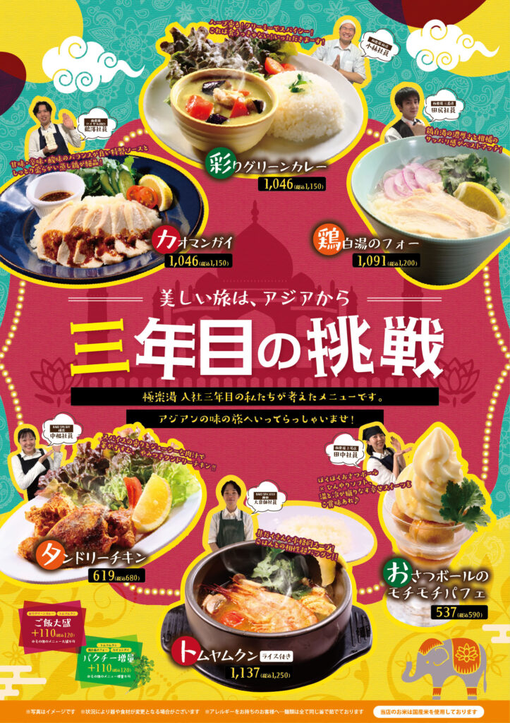 極楽湯 金沢野々市店にて、キャンペーンやグルメなど春限定のさまざまな企画が実施されます♩