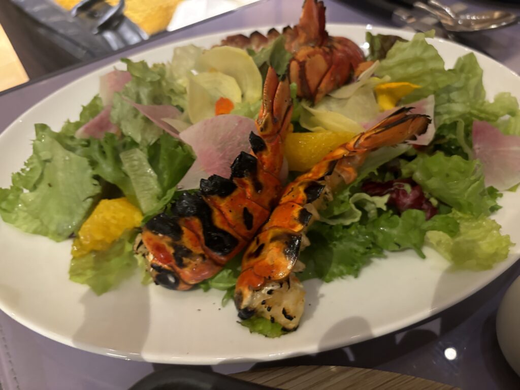 オマール海老のロースト ミックスリーフ シトラスドレッシングは、ぷりっぷりのオマール海老にローストの香ばしさが絡み、シトラスの爽やかな酸味がすっと抜けていく贅沢なサラダ。とってもおいしい…!