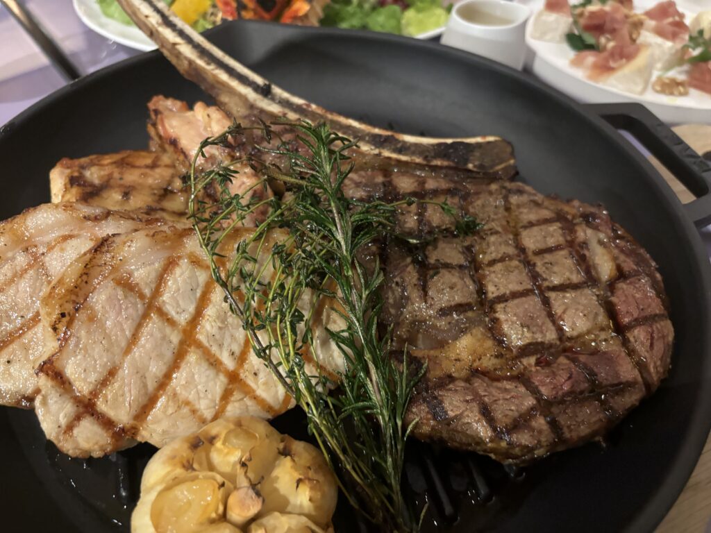 中でも目を引くのは、堂々とした存在感を放つオーストラリア産ブラックアンガス牛のトマホーク。