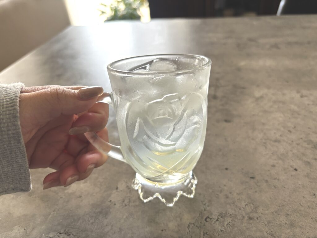 まずは炭酸水で割っていただきました。10倍濃縮のため、シロップは少しでOK!