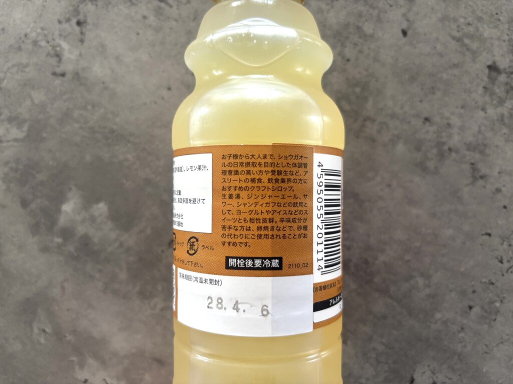 通常の市販生姜シロップは3倍〜5倍が多いのではないでしょうか。