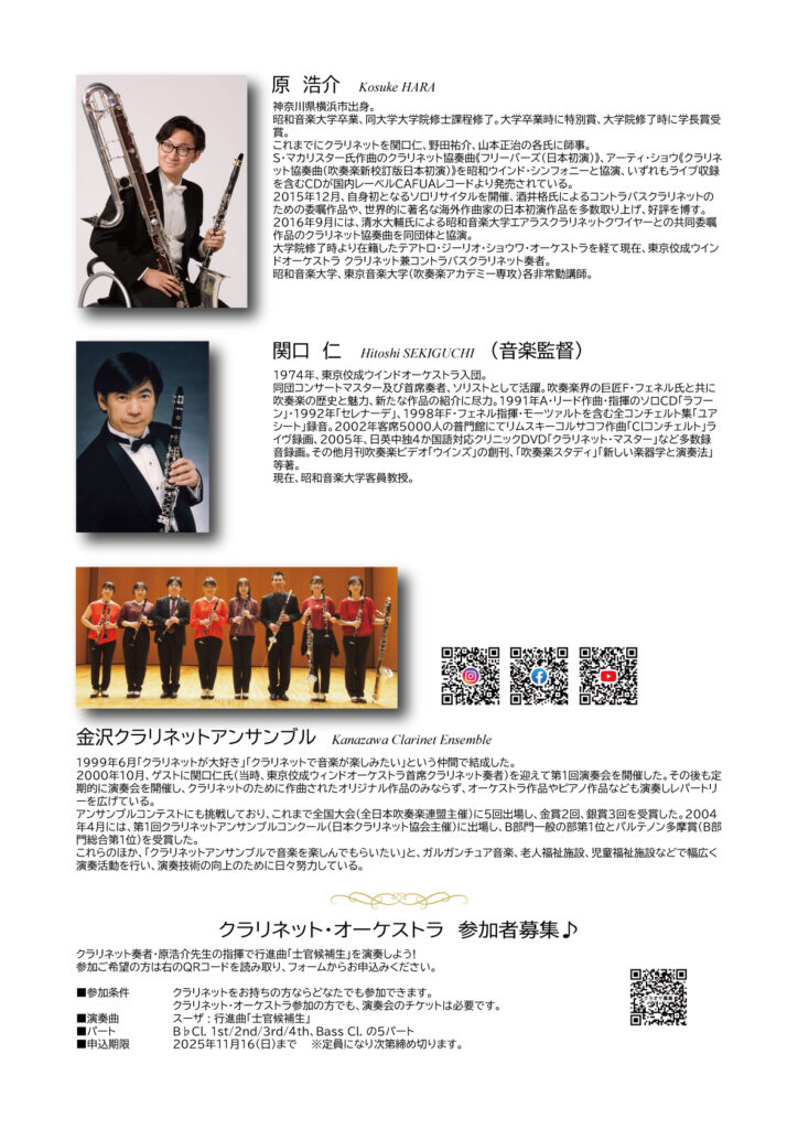 さらに!今回は、原先生指揮による一般参加型の「クラリネット・オーケストラ」も行われます🎶
