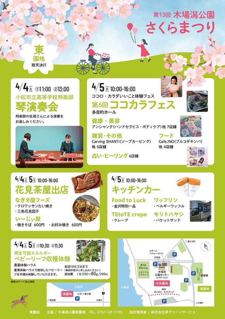 3月28日(土)~4月12日(日)の期間中、「第13回木場潟公園さくらまつり」「第6回 farmers marketさくらマルシェ」が開催されます。