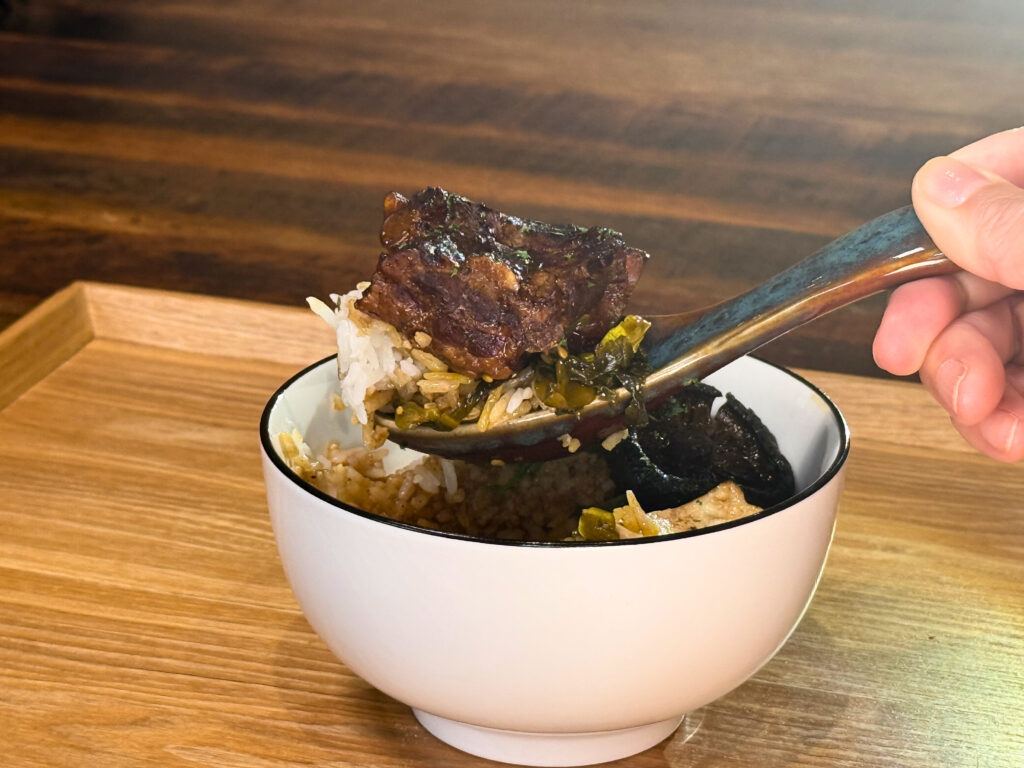 甘辛い味付けや高菜の漬物の食感がクセになります。