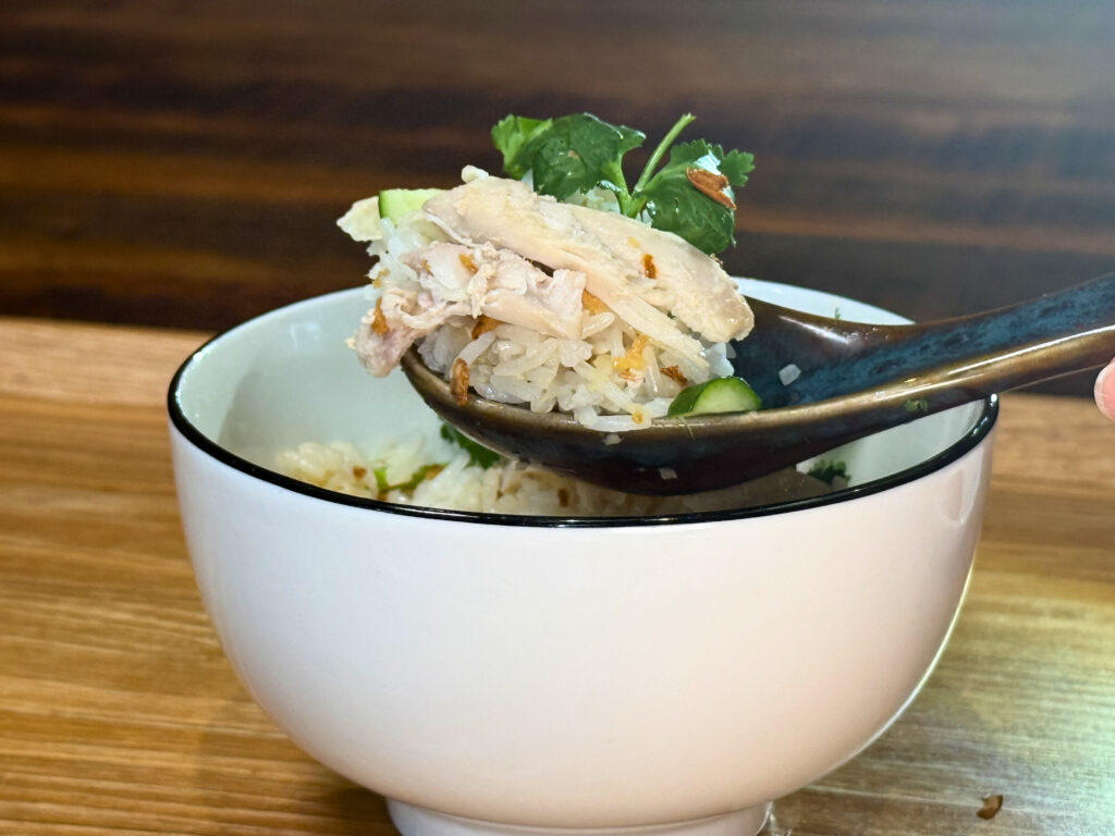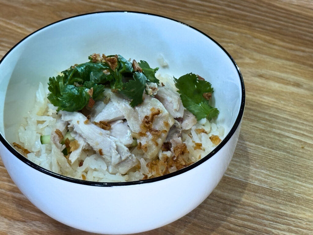 ショウガ、レモングラス、タマネギと一緒に蒸した鶏肉は、しっとりやわらかい💕