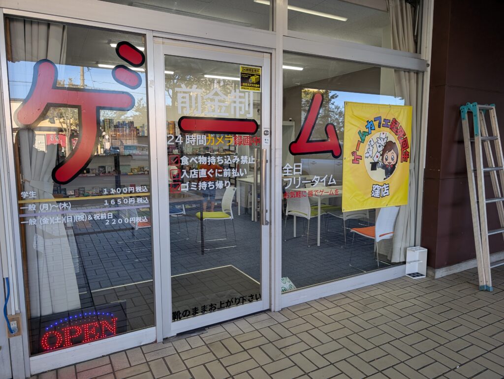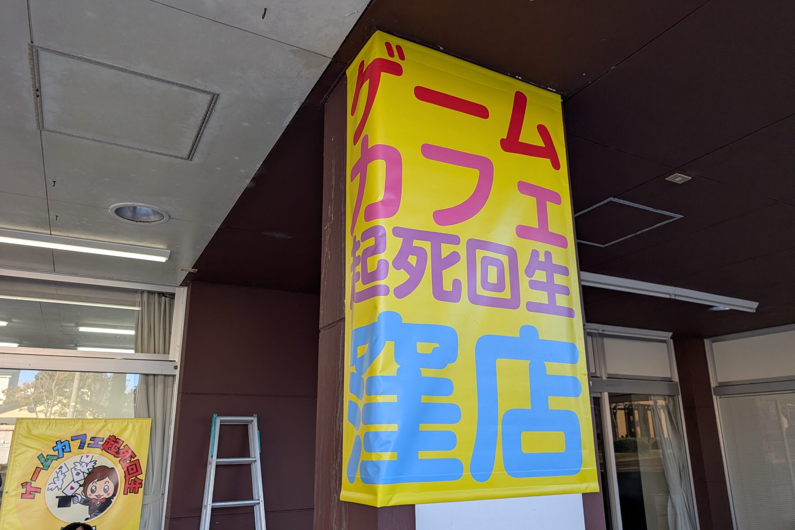 通り沿いに立てられた旗が目を引く「ゲームカフェ起死回生窪店」。