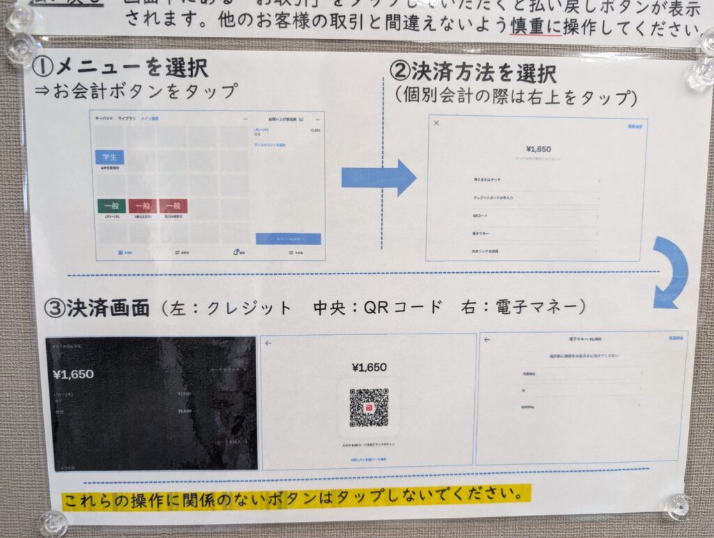 入店したら、入口向かって左手のタブレットを使い、料金を支払います。