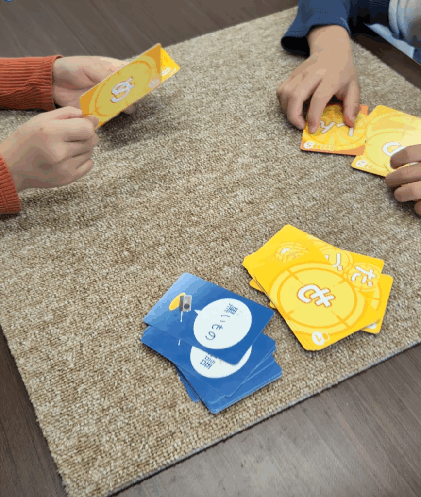 言葉遊びのカードゲームで、「子どもと一緒に」はもちろん、「大人だけ」でも十分楽しめると感じました。
