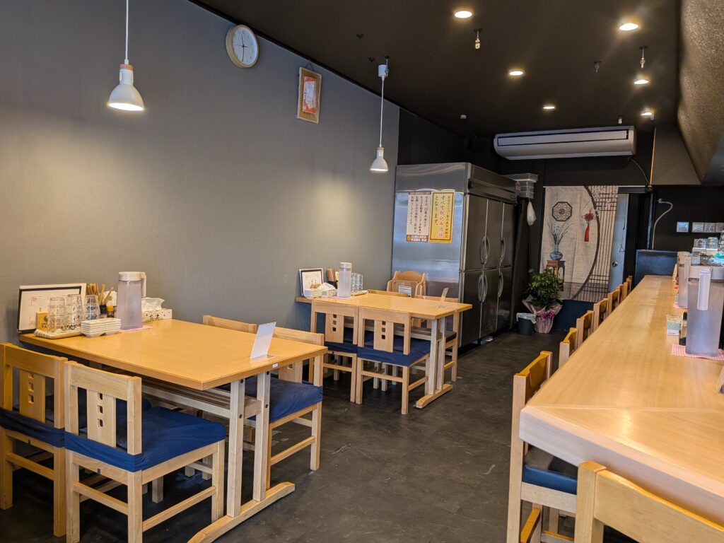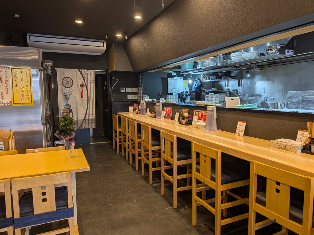 店内は4人掛けのテーブル席が2つ、カウンター席が11席あります。