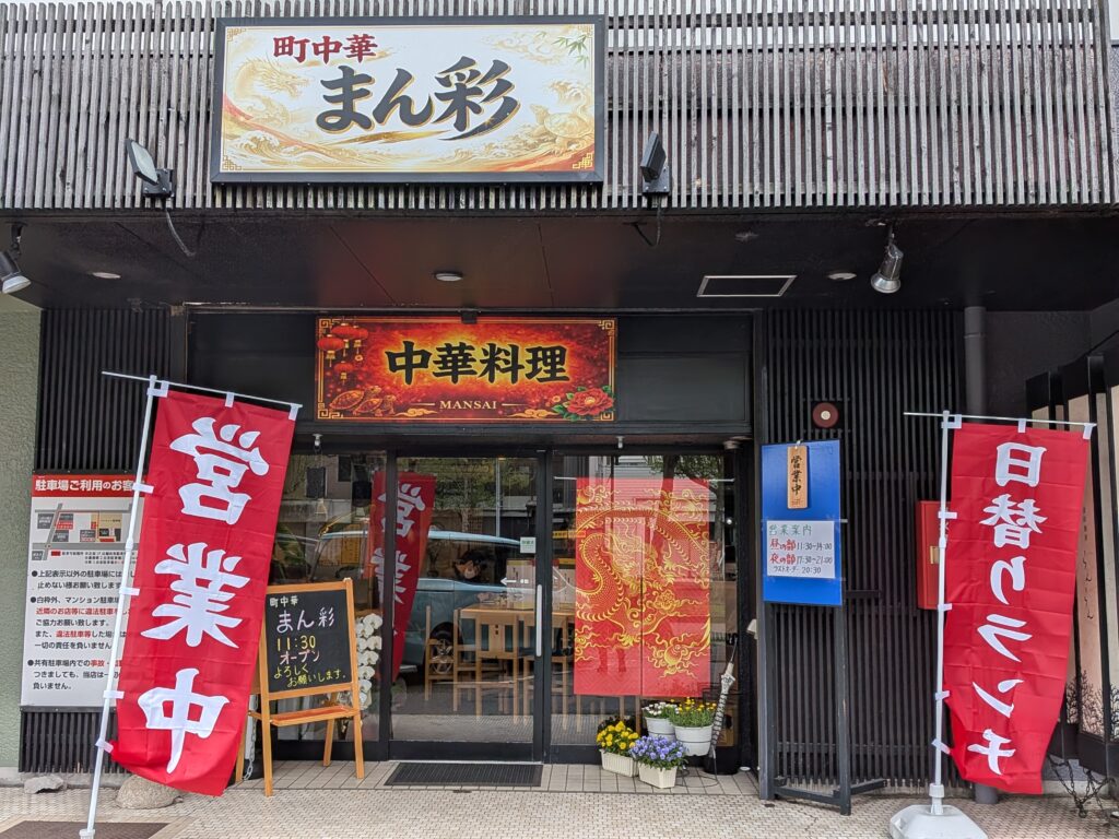 | 営業時間 等 | 【営業時間】 ・11:30〜14:00/17:30~2100 【定休日】 ・不定休 【駐車場】 ・店舗前に共有駐車場8台、店舗横に第2共有駐車場3台、第3共有駐車場5台あり 【その他】 ・営業日は町中華 まん彩公式Instagramにてご確認ください。 |