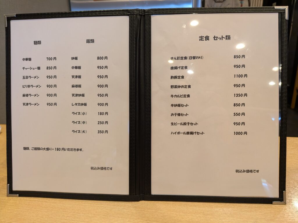 「町中華 まん彩」のメニューは何といってもそのコスパの良さが光ります。