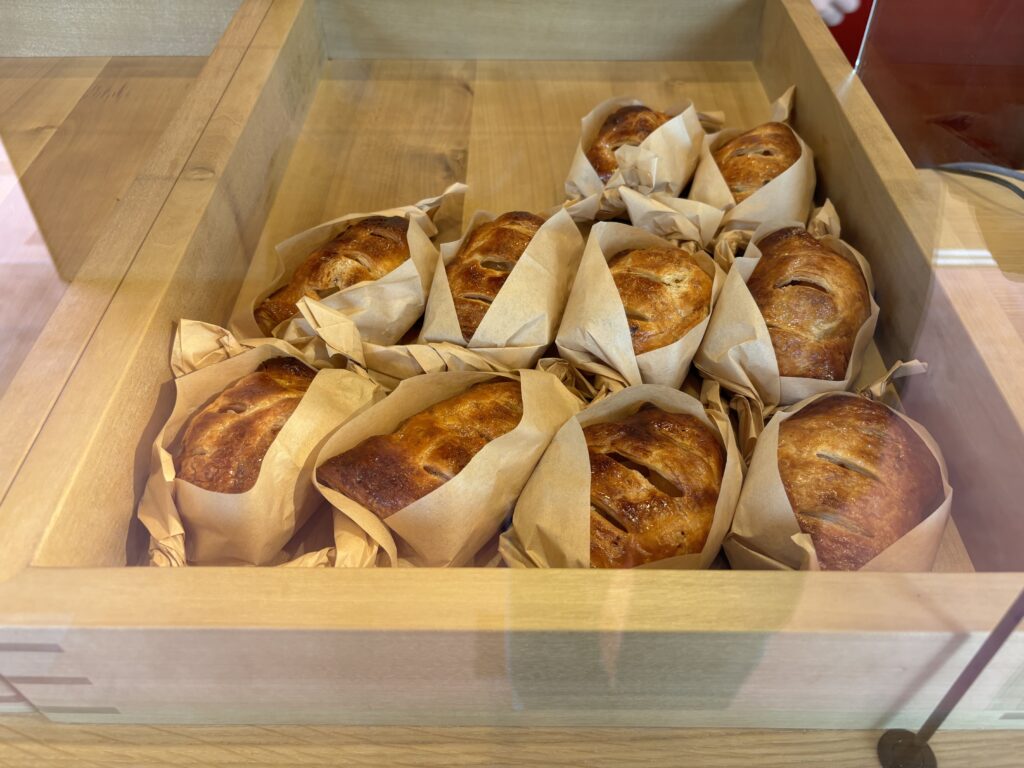 お店に入ると焼きたてのアップルパイがずらりと並んでいて、香ばしい香りが。