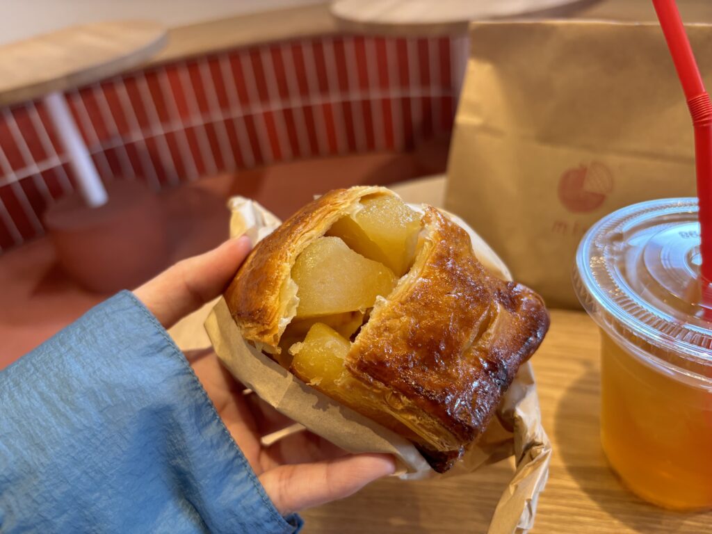 一口頬張ると、サクホロ食感のパイ生地と、ゴロゴロと大きめにカットされたりんごが絶妙にマッチ。