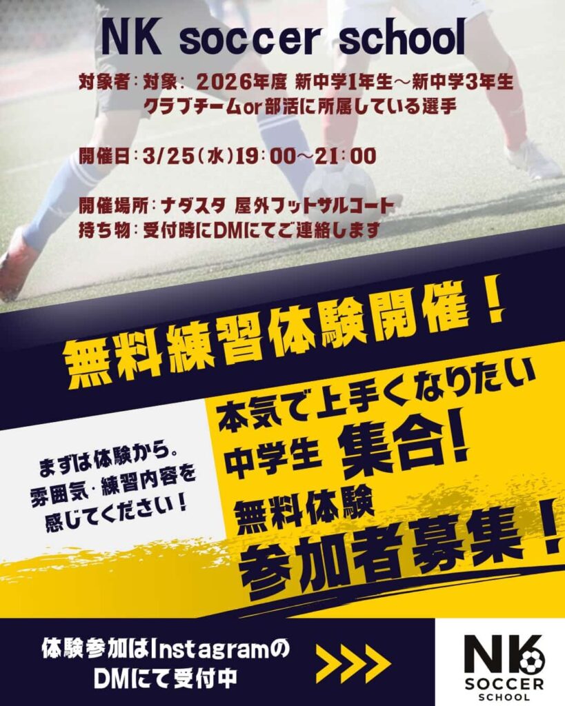 | イベント名 | NK Soccer School 2026年度スクール生募集 |