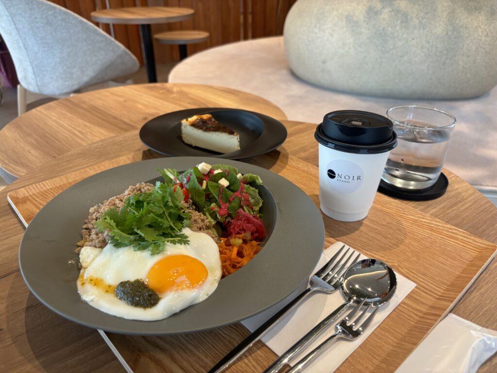 複合施設「knot」内に、ハンドドリップコーヒースタンド「NOIR STAND」と、素材にこだわったフードを提供されている「Organic Kitchen いずみのTERRACE」が向かい合って誕生。