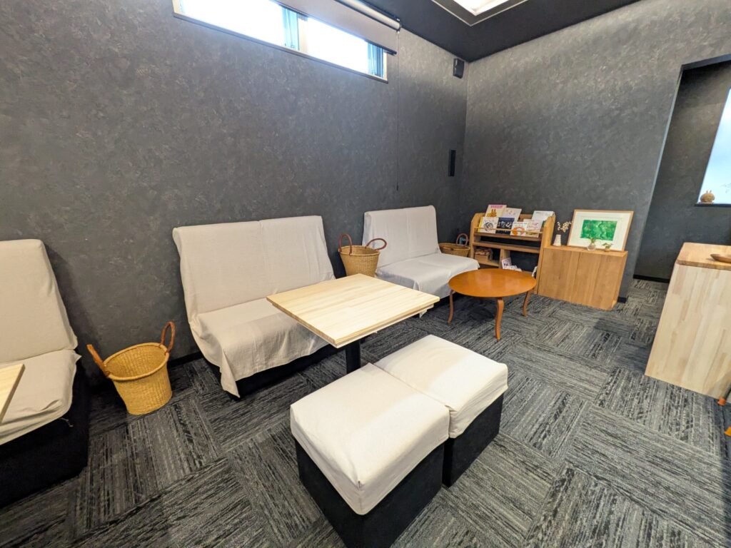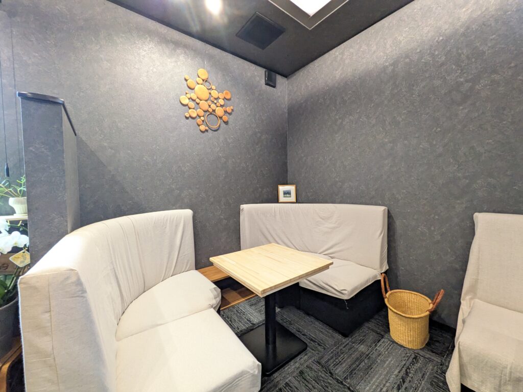 2人掛け・4人掛け・6人掛けのソファー席がそれぞれ1つずつあり、店内での飲食が可能です。