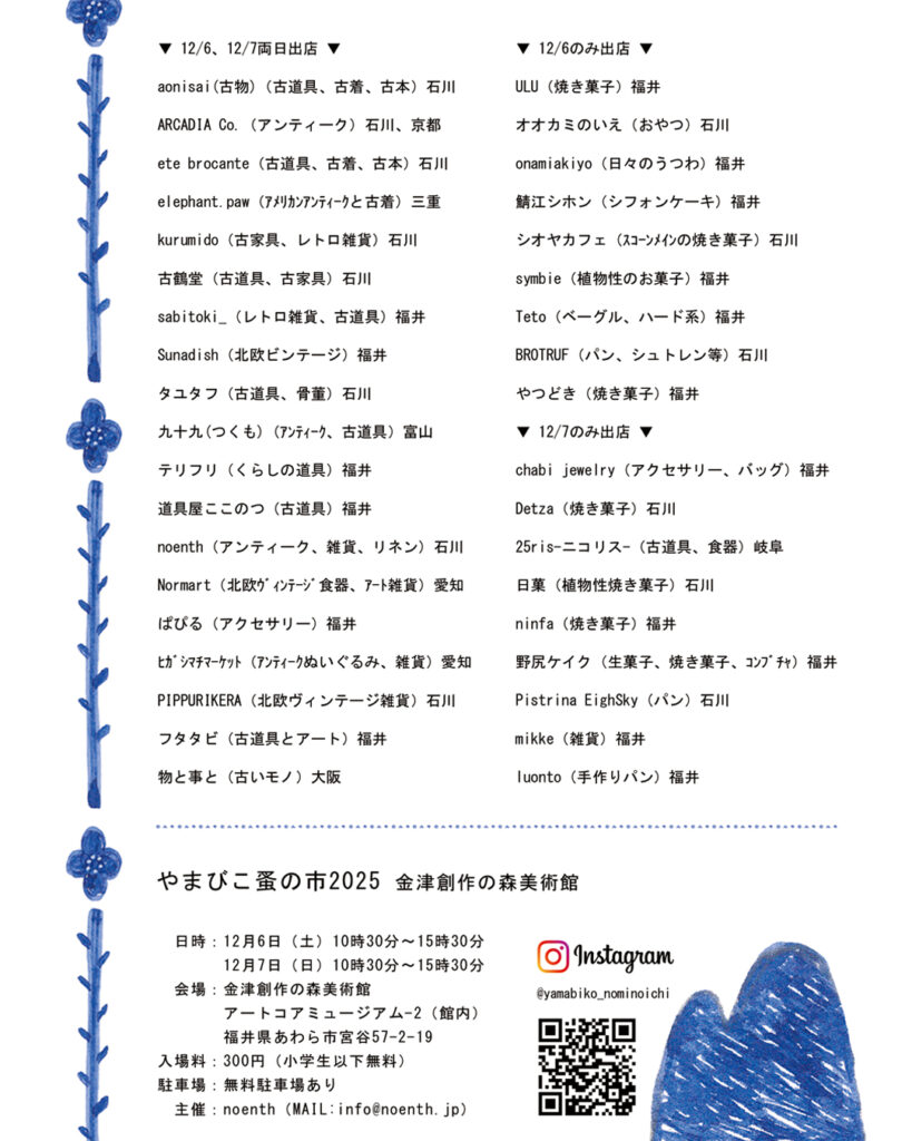 【12/6(土)~12/7(日)】やまびこ蚤の市2025 金津創作の森美術館