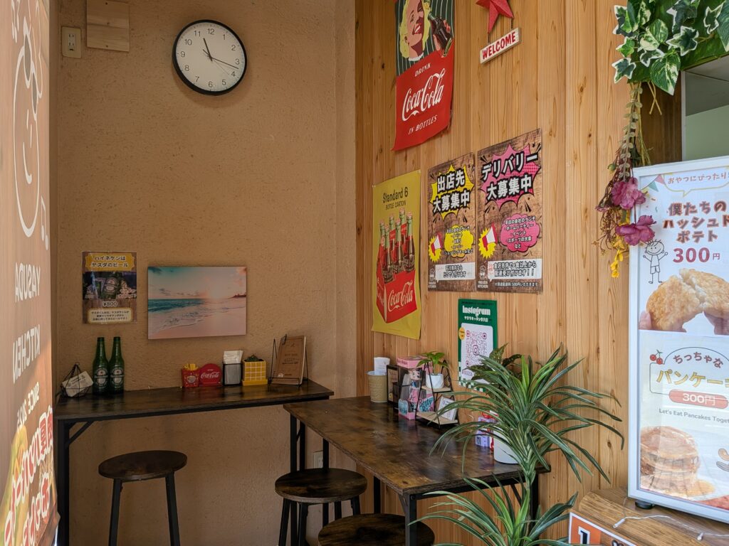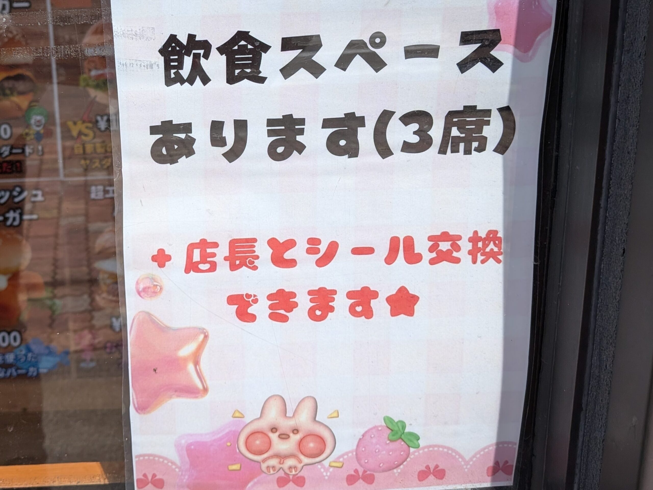 店内はカウンター席が3席あり、店内での飲食が可能です。
