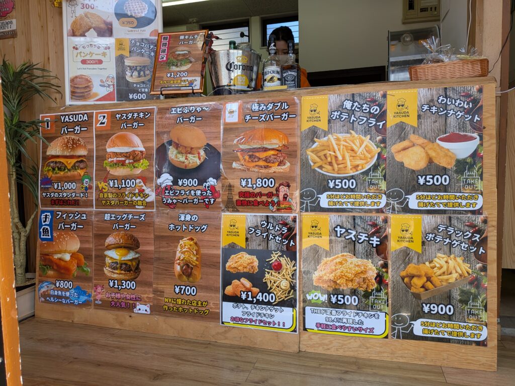 スタンダードな「YASUDAバーガー」をはじめ、「フィッシュバーガー」や「エビふりゃ~バーガー」、「極みダブルチーズバーガー」など、多様なラインナップのハンバーガー♩
