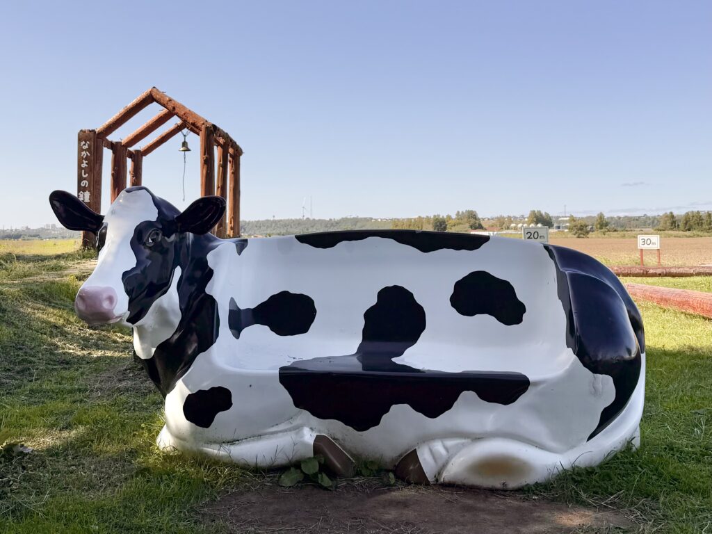 ウシさんのベンチやミルク缶をモチーフにした手洗い場など、写真映えするものがたくさんあるのも魅力のひとつ📷🌟