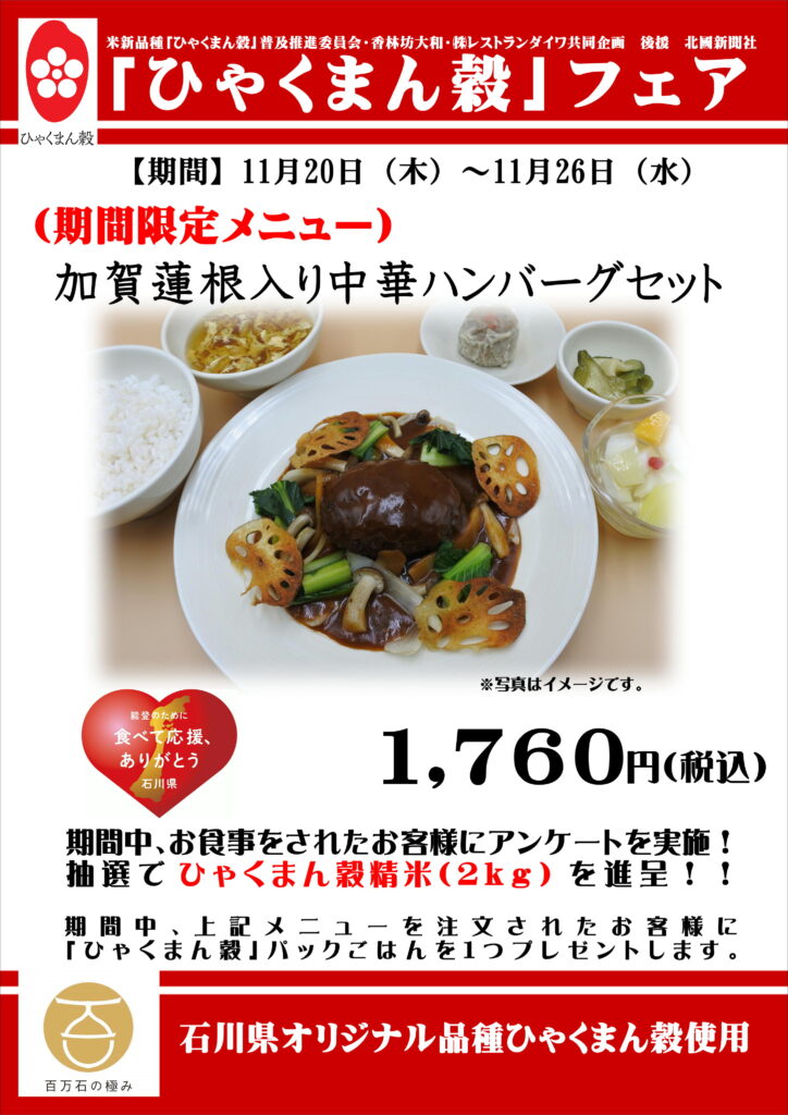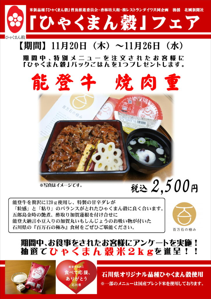 11月20日(木)~11月26日(水)に、大和 香林坊店にて「ひゃくまん穀フェア」が開催されます。
