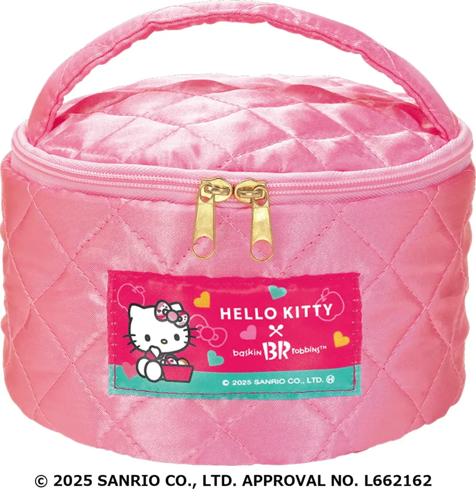 さらに、「ハローキティ バニティポーチ」付き!キルティングのピンクサテン生地でできたポーチは、ラブポーションサーティワンデザインのハローキティがプリントされたオリジナルデザインで、コスメや小物の収納に使いやすいサイズです。