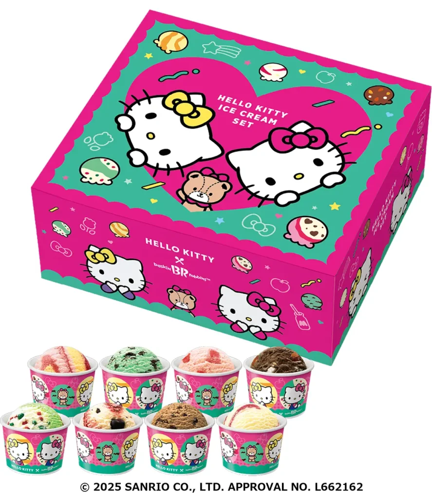 お好きなアイスクリーム8コを選んで、おうちでアイスクリームを楽しめるアイスクリームセットは、ハートの中からハローキティたちが覗いているキュートなデザイン!カップもサーティワンのフレーバーとコラボしたオリジナルデザインです。