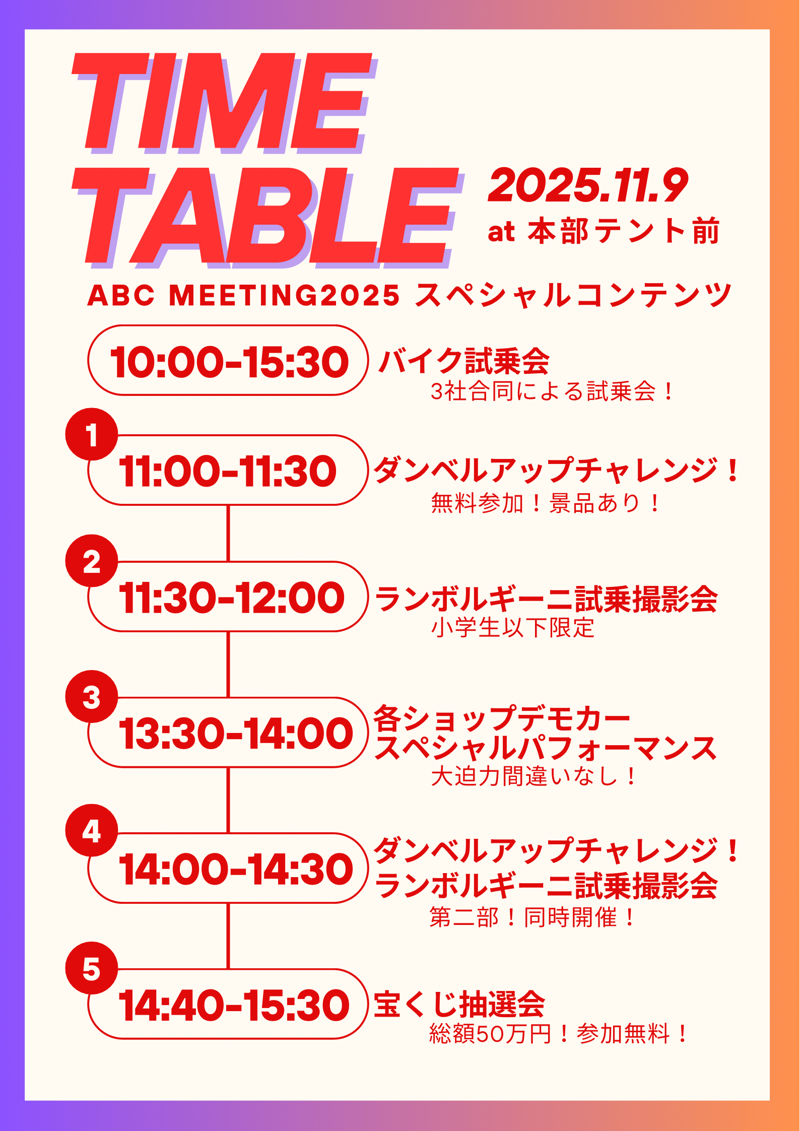 【11/9(日)】ABC MEETING 2025@小松市~車・バイク・フィットネス体験イベント~