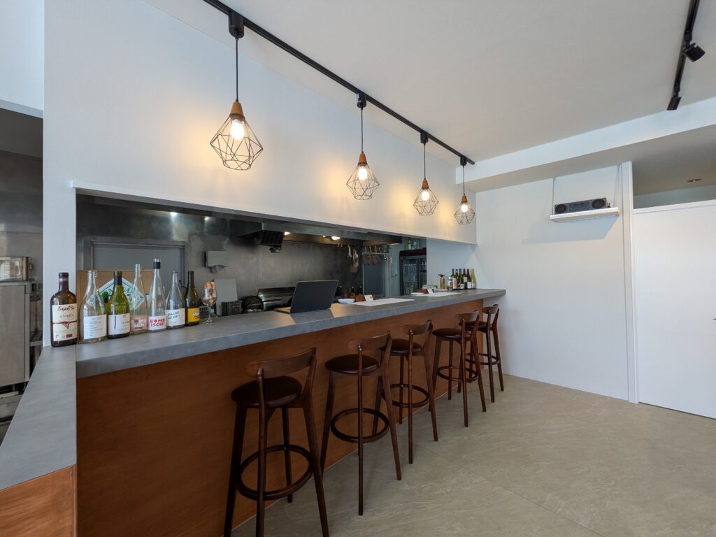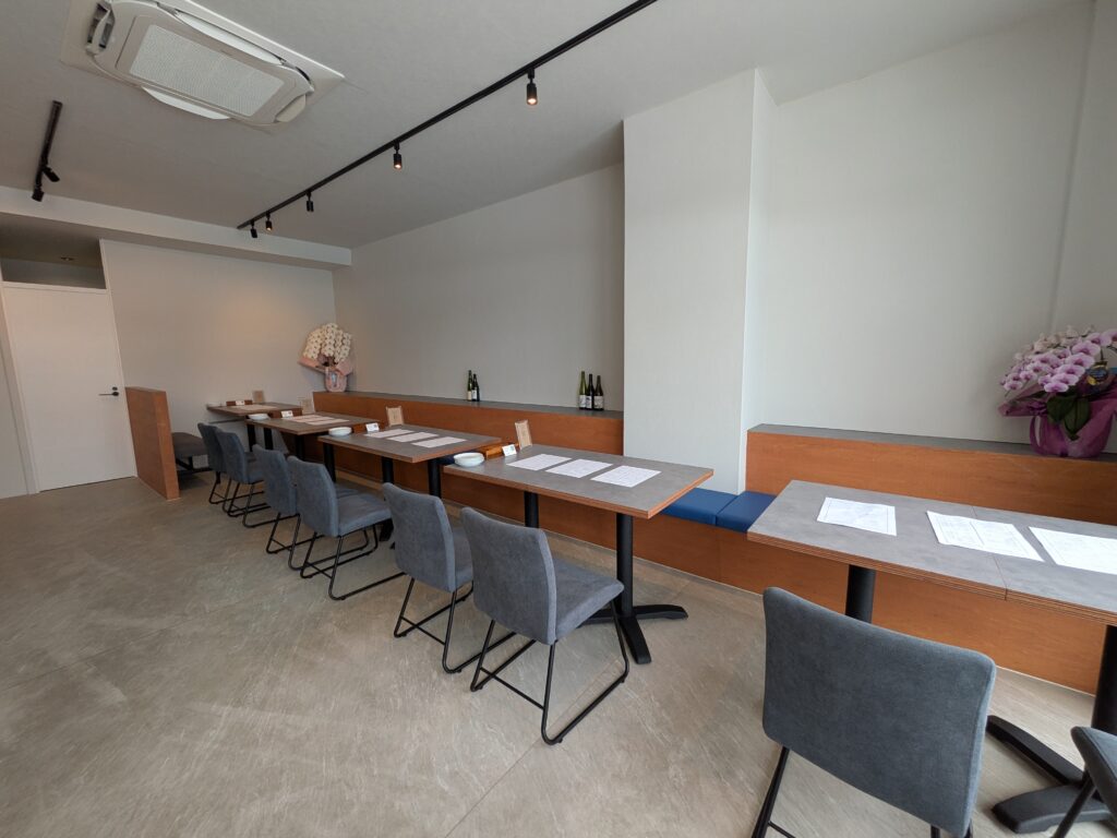 グレーで統一されたシックな店内には、カウンター席が5席・4人掛けのテーブルが5つ。