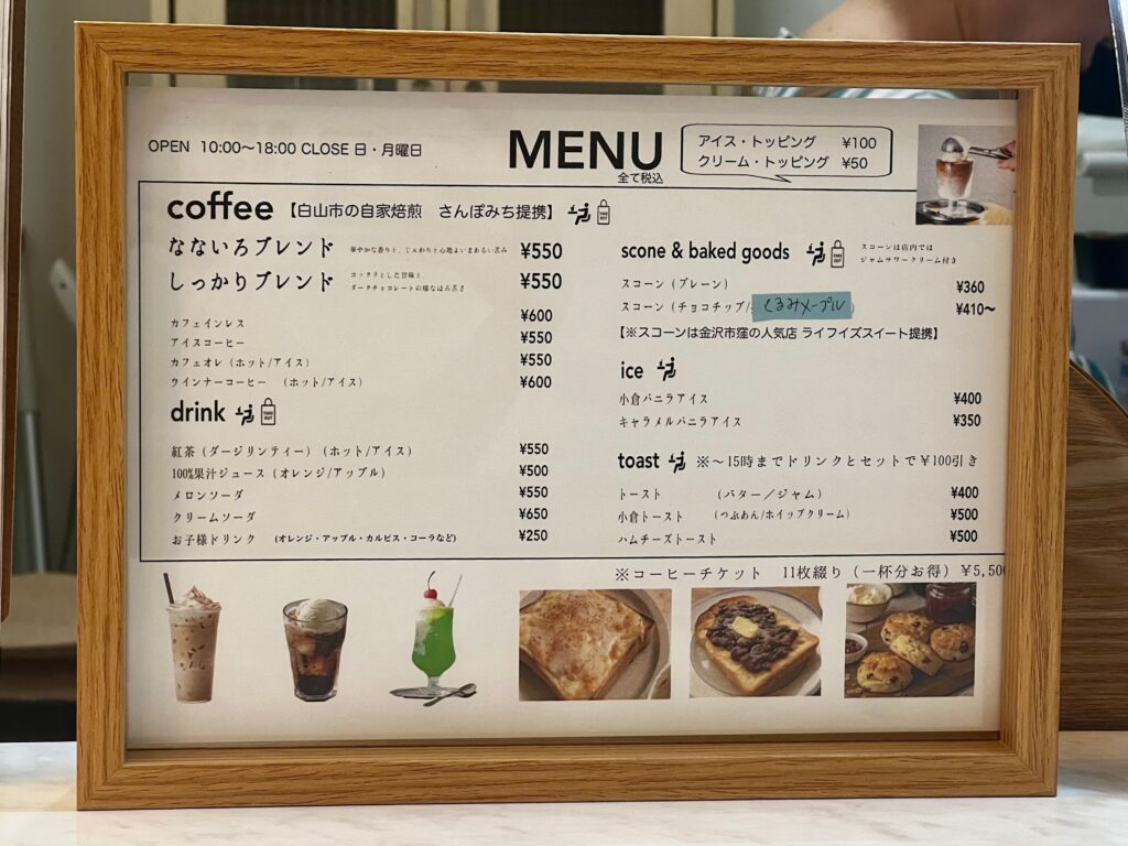 白山市の焙煎所「さんぽみち」と提携したオリジナルブレンドで、ここだけの味わいが楽しめます。
