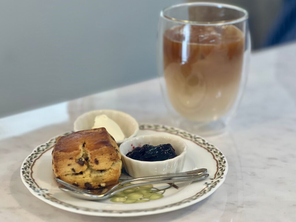 続いて、「アイスカフェオレ」(税込550円)と「チョコチップスコーン」(税込410円)。