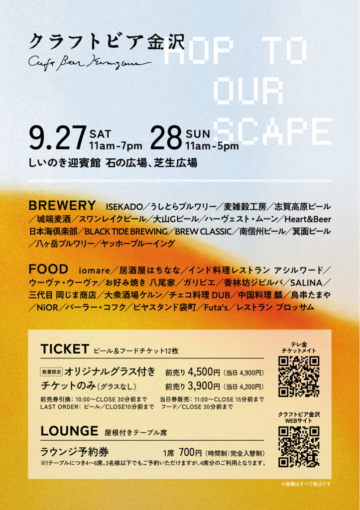 9月27日(土)、9月28日(日)の2日間、金沢市のしいのき迎賓館にて「クラフトビア金沢」が開催されます。