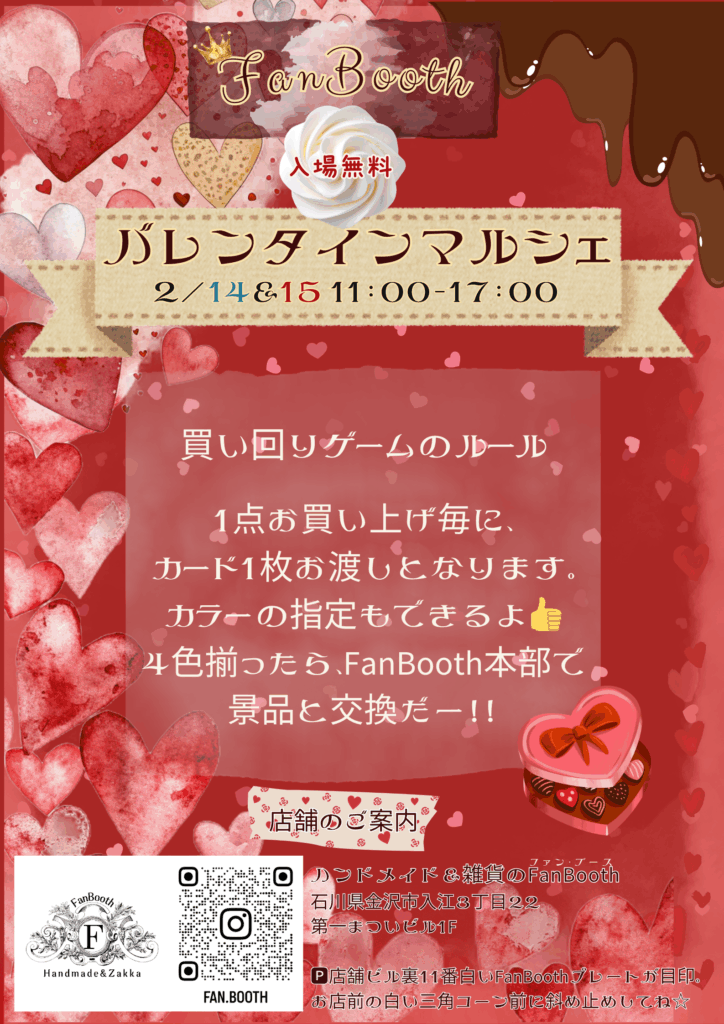 2月14日(土)、2月15日(日)の2日間、金沢港クルーズターミナルにて「FanBooth バレンタインマルシェ」が開催されます。