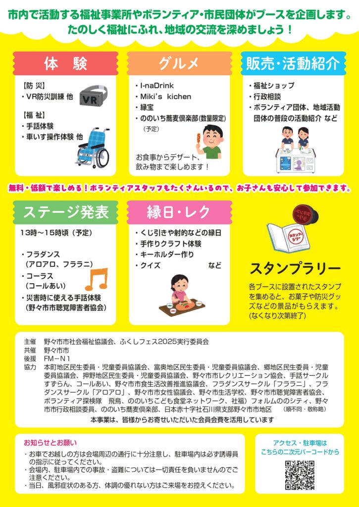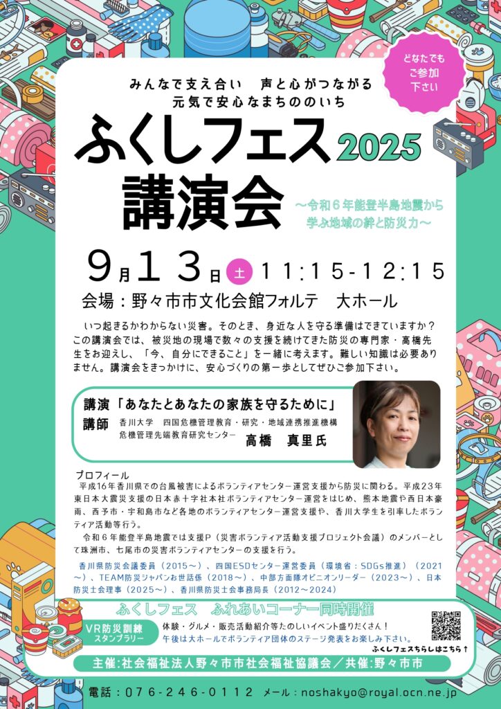 9月13日(土)、野々市市文化会館フォルテにて「ふくしフェス2025」が開催されます!