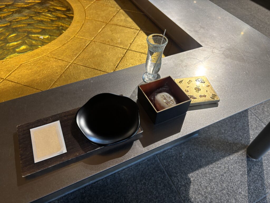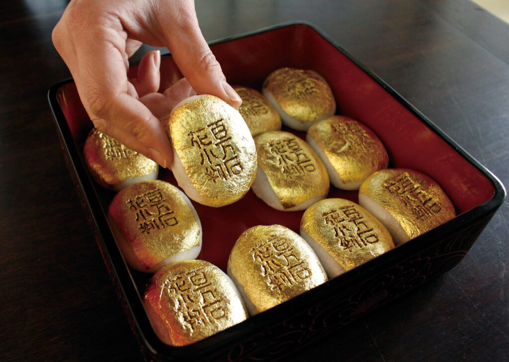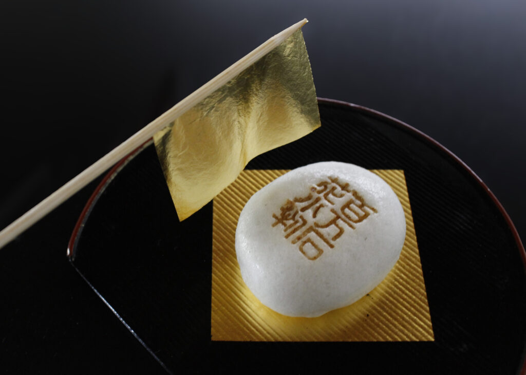 「ふわっ」と舞う金箔を、おまんじゅうの上にそっとのせる瞬間は、思わず息を呑むほど…!