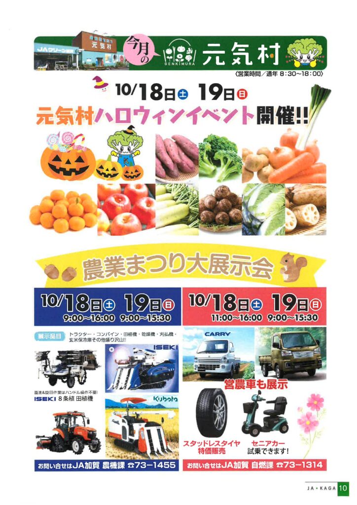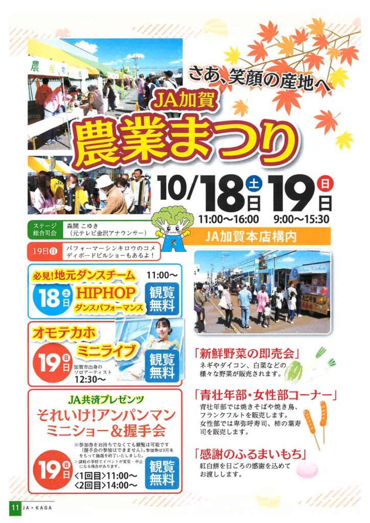10/18(土),10/19(日)の2日間、JA加賀本店にて「JA加賀農業まつり」が開催されます!