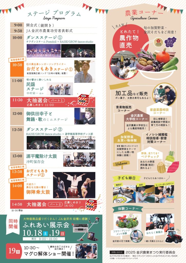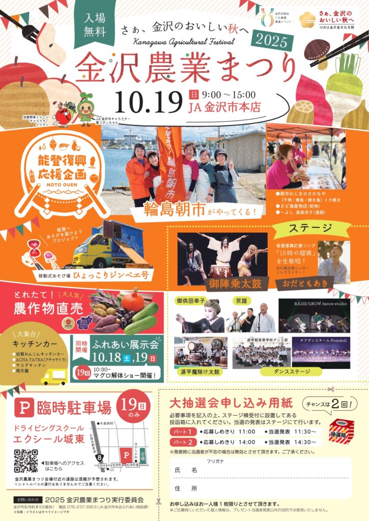 10/19(日)、JA金沢市本店にて「2025金沢農業まつり」が開催されます!
