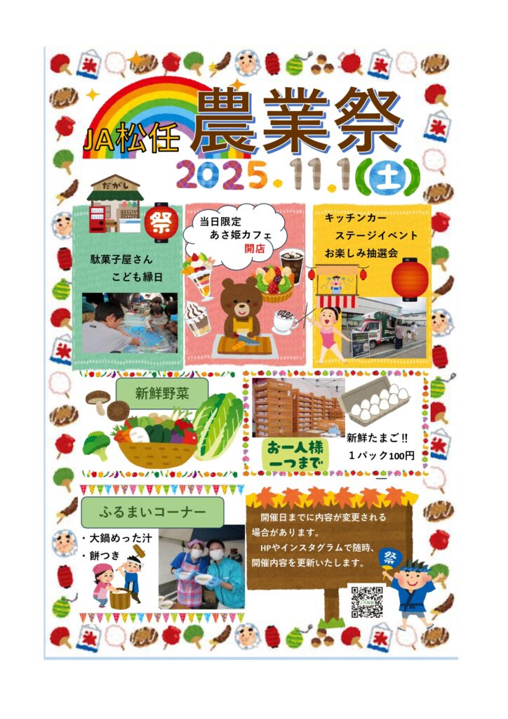 11/1(土)、JA松任本店にて「JA松任農業祭2025」が開催されます!