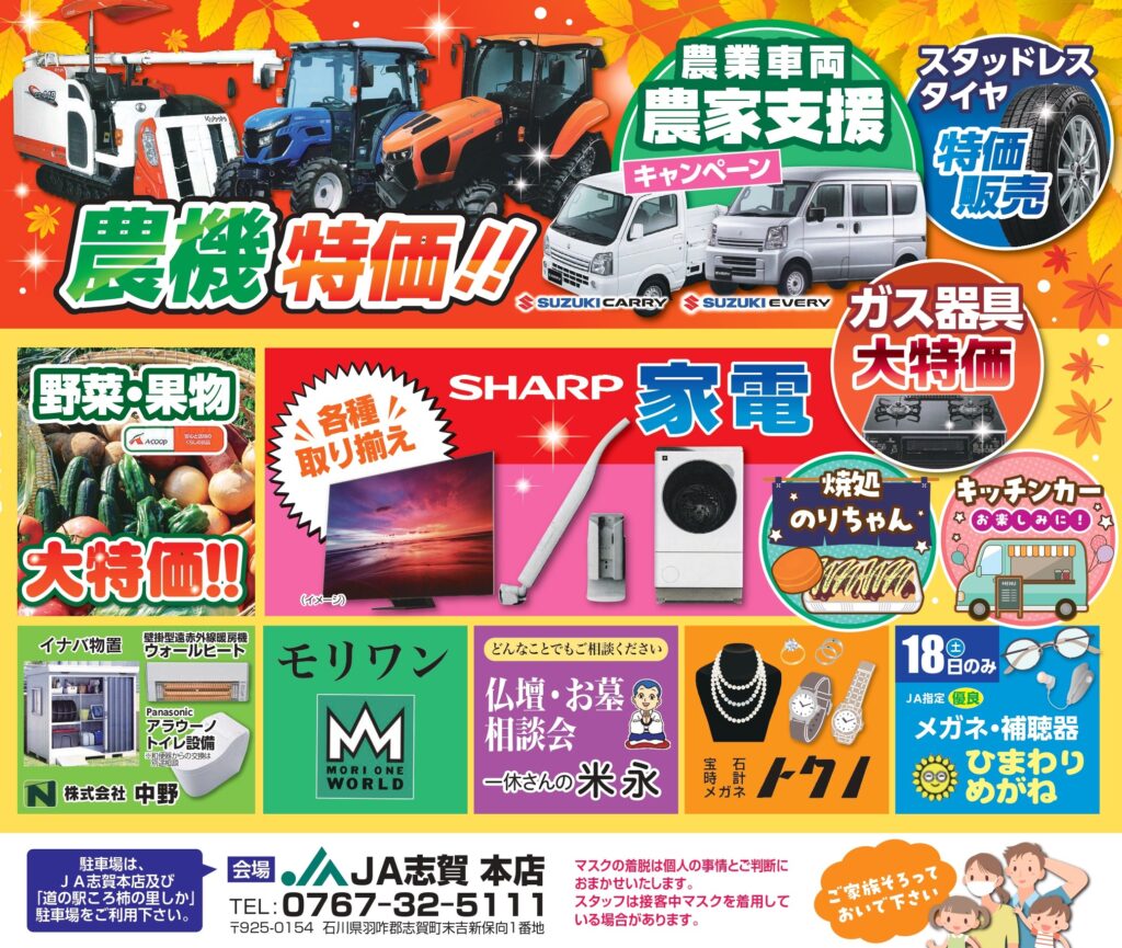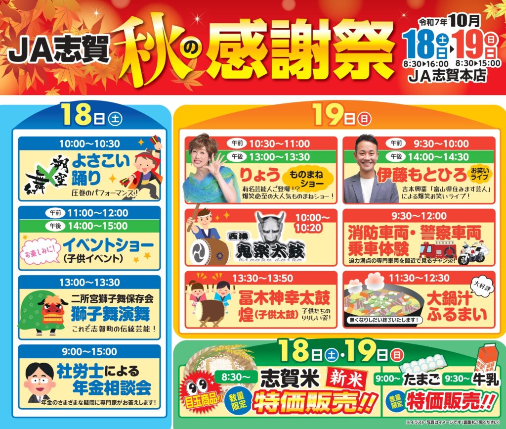 10/18(土),10/19(日)、JA志賀本店にて「JA志賀 秋の感謝祭」が開催されます!