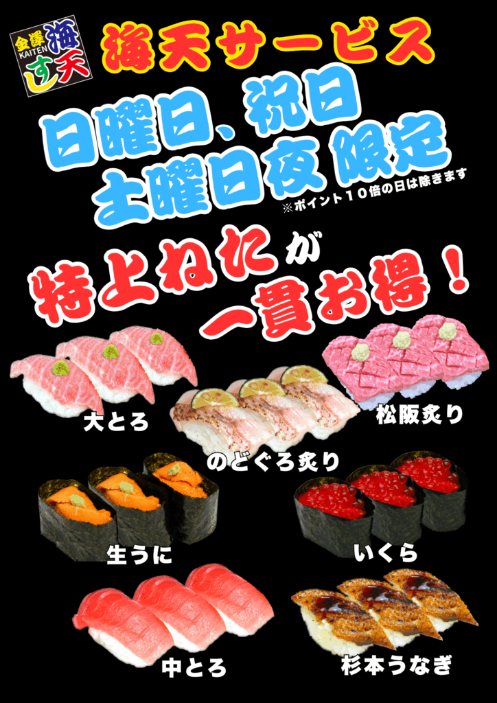 本格的な握りたてのお寿司を気軽に、そしてお得に楽しめるのが「海天すし」の大きな魅力です。