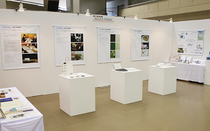 紙菅パーテーションの展示ブースで様々な紙や加工、デザインなどが展示されます。自分だけの推し紙を見つけられるかも♪