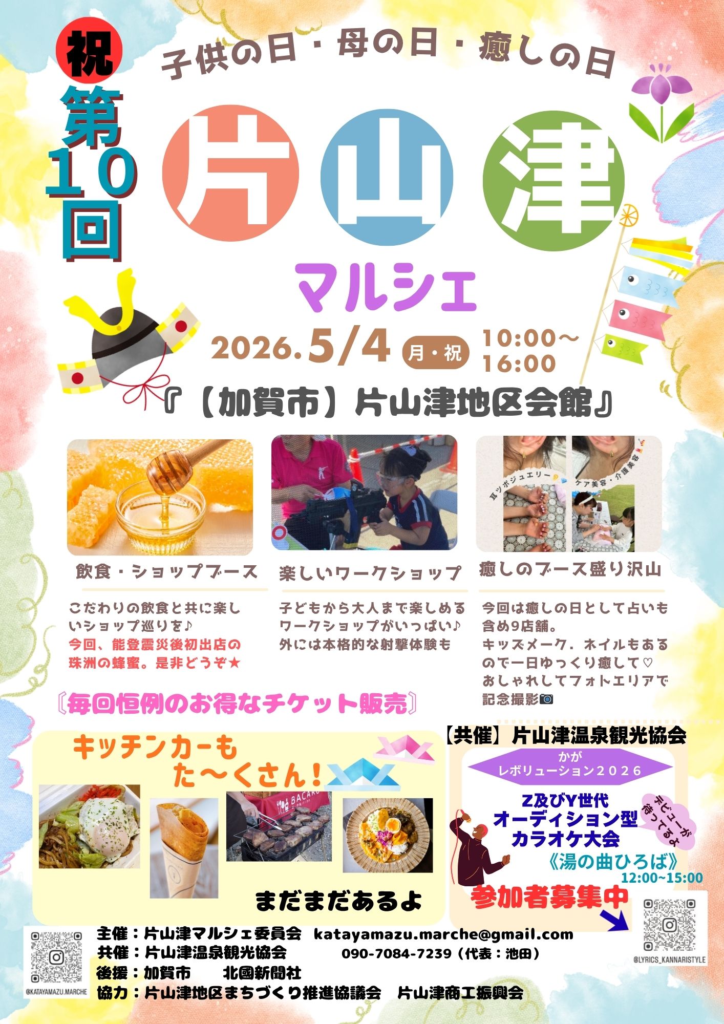 5月4日(月・祝)、片山津地区会館にて「片山津マルシェ」が開催されます。